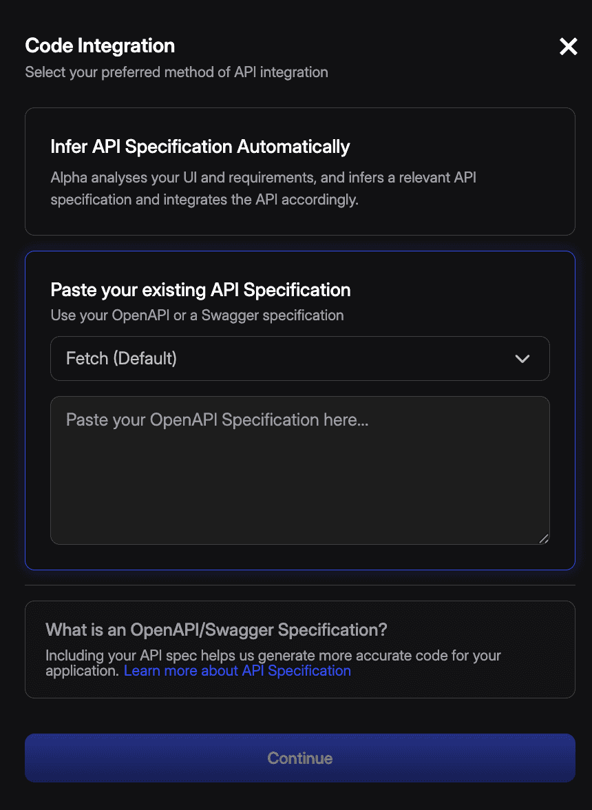OpenAPI spec: You can directly copy-paste your API Swagger doc or OpenAPI spec and it'll automatically understand which API endpoint needs to be connected to which design element