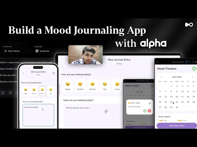 Yes. Dualite is a vibe coding platform that generates and manages all the code automatically in the background. You interact entirely through a prompt bar and visual editor. For a mood journal app, Dualite handles the daily entry input, emoji mood selector, 30-day timeline calendar view, and local storage logic : all from a single prompt. The end result is a real React Native app you can ship to App Store and Play Store, or hand to a developer at any point without starting over.