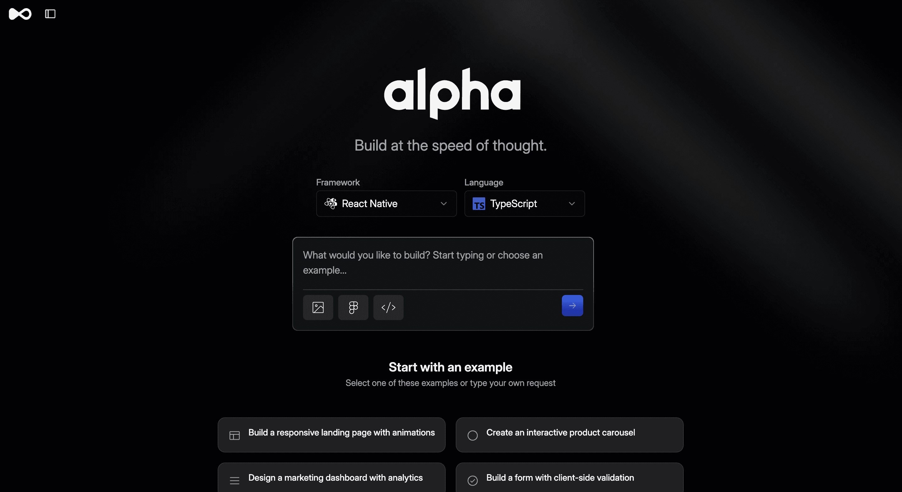 Visit dualite.dev and create a free account. You will land on a clean dashboard with a prompt bar asking what you want to build today.