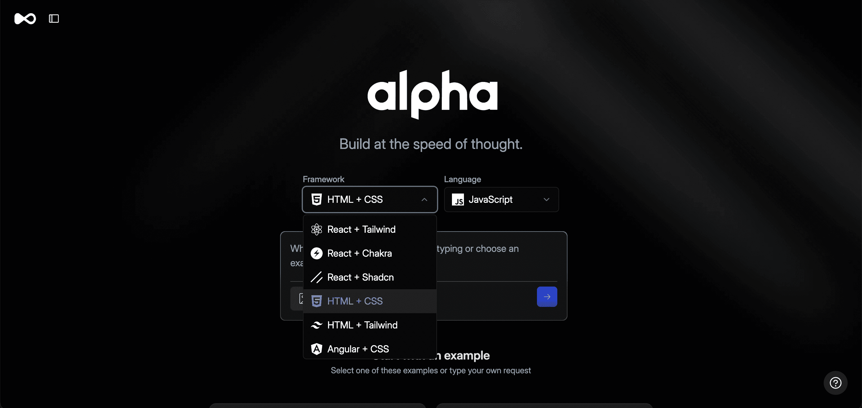 From the framework dropdown, select HTML + CSS. Add a short prompt describing what you want : a landing page, a dashboard, a marketing site : and Dualite gets to work.