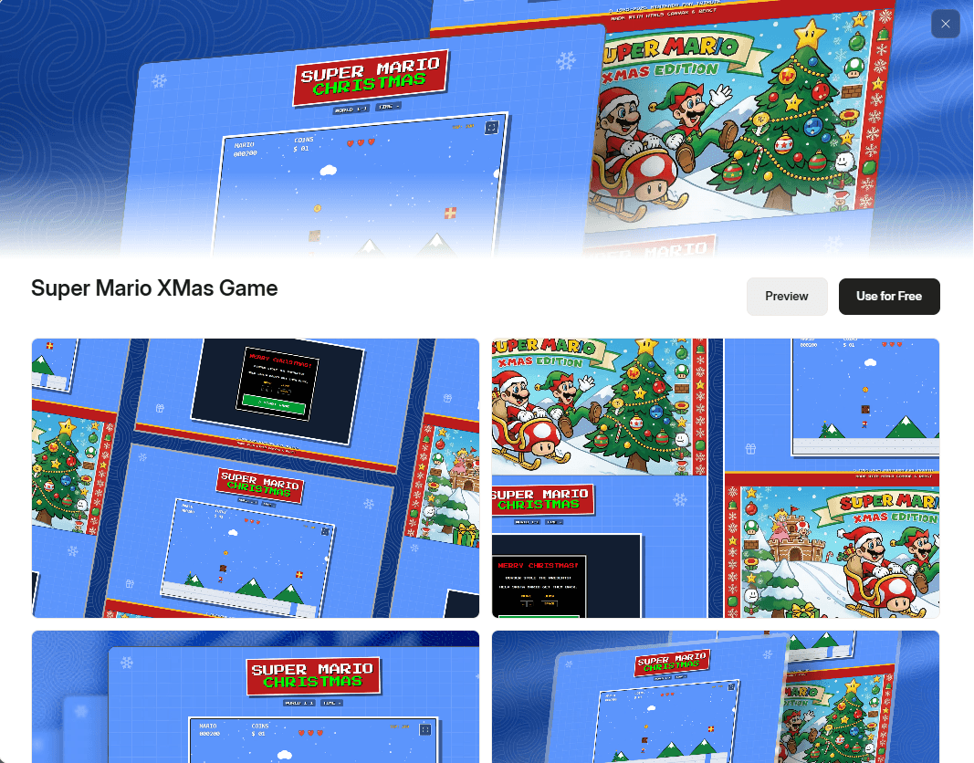 Choose from a growing library of pre-built templates across five categories Websites, AI Apps, Interactive Apps, Dashboards, and Mobile Apps. Templates give you a professionally designed starting point that you customise with prompts instead of building from scratch.