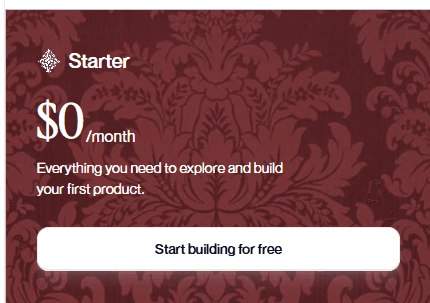 The Starter plan is completely free ; no credit card required. It gives you 5 messages to explore the platform and build your first project. Every core feature is included from day one.