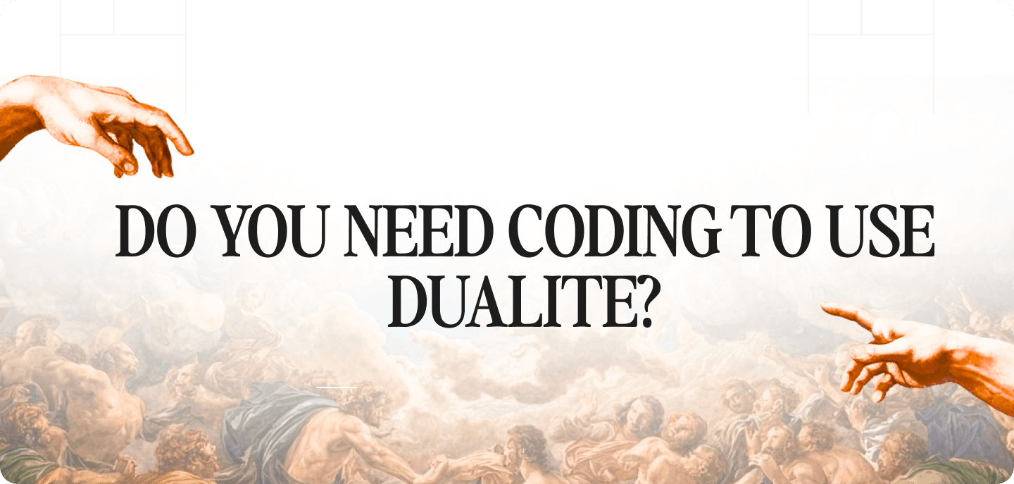 No. Dualite is designed for non-technical users. You describe what you want in plain English and Dualite writes all the code. The code is always accessible if you want it, but you never need to touch it.