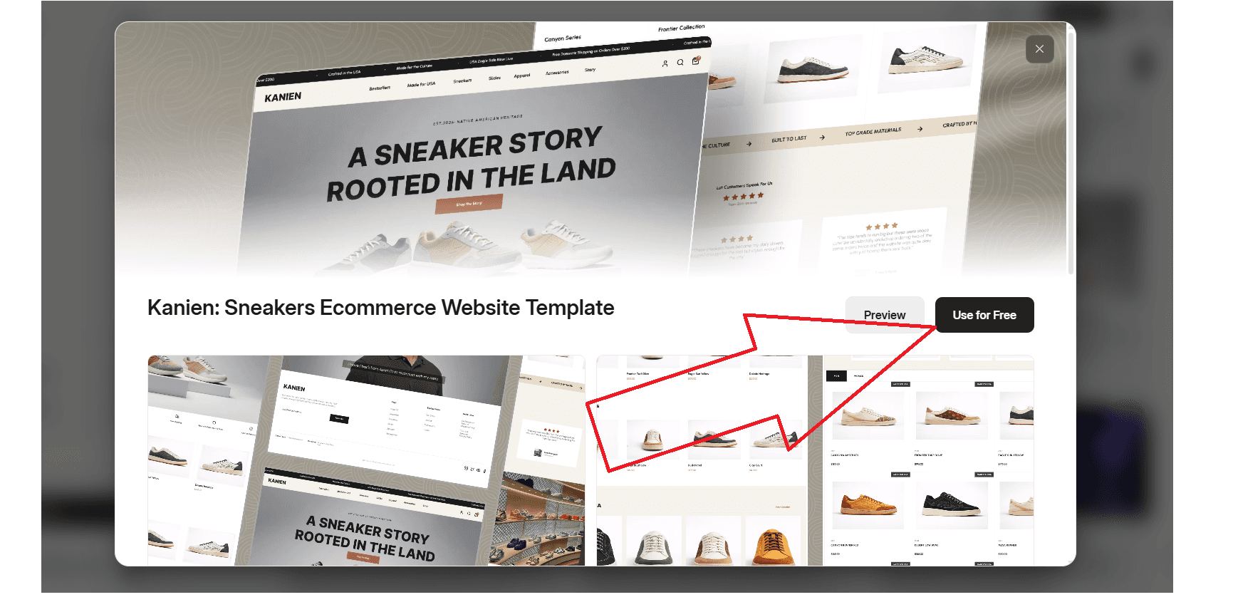 Click on Kanien to preview it, then hit Use for Free to make it your starting point.
