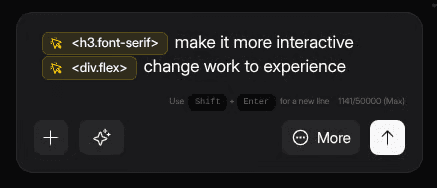 You're not limited to one element per message. Repeat the process across as many elements as you need select a header, Add an instruction, select a card, add another, Then send them all together. The AI processes every selected element in context with each other, which means complex layout changes that would have taken five separate prompts can happen in one.