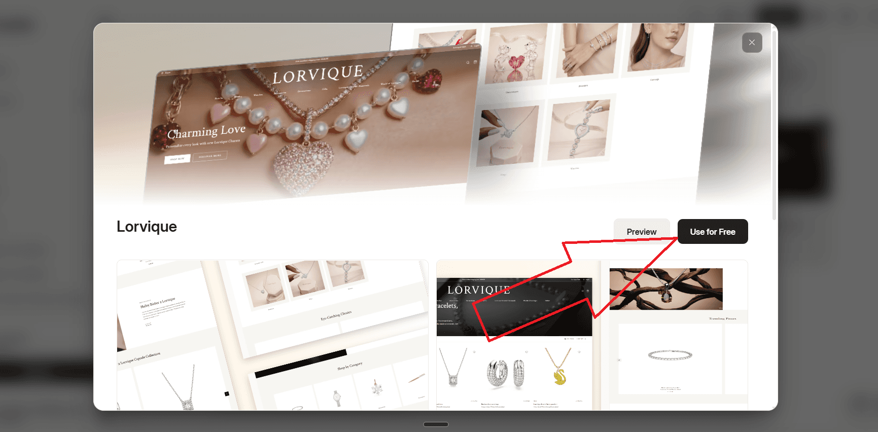 Look for the Lorvique template, built specifically for jewellery brands, with a luxury hero section, full navigation, collection grids for rings, necklaces, bracelets, and earrings, and editorial product pages that give your brand a premium feel from the first scroll.