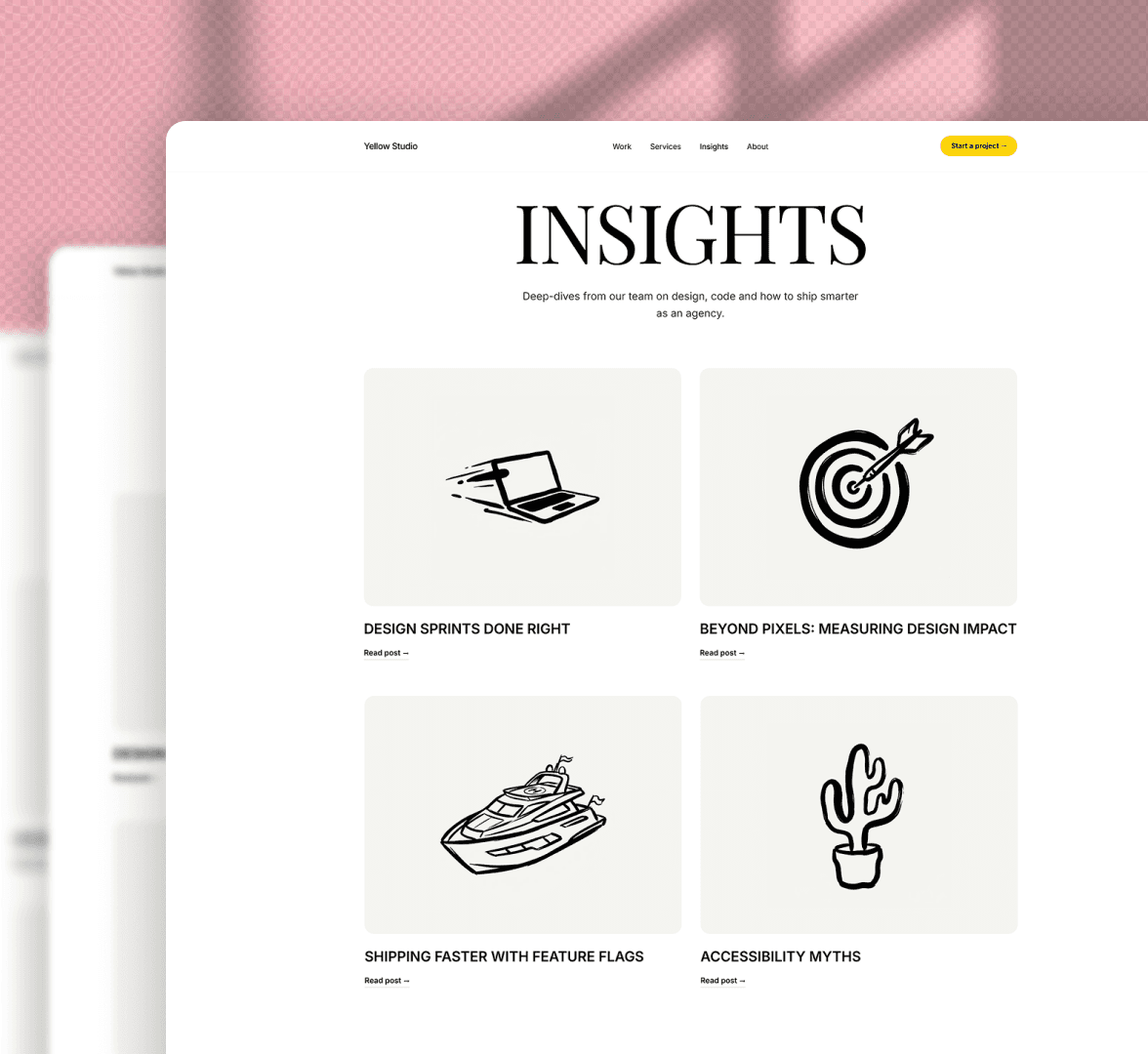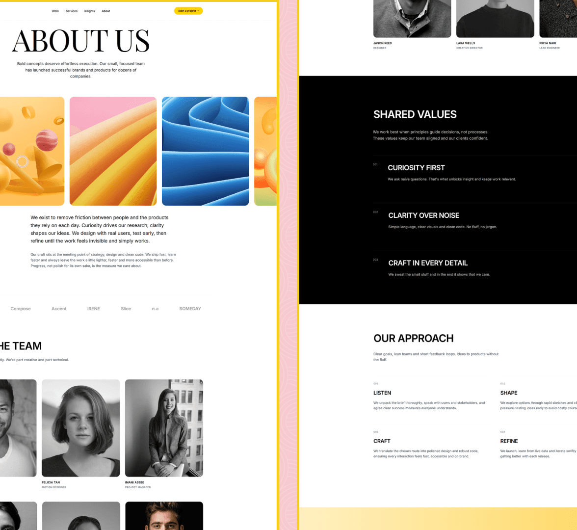 Yellow Studio is a modern and playful design agency page built to house everything you need: work, services, blog posts and more.